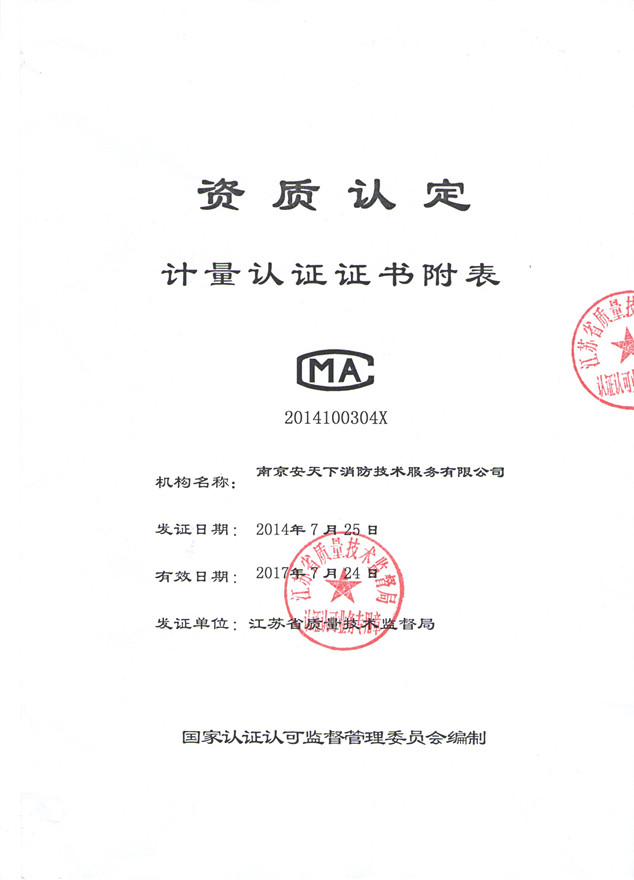 计量认证证书附表